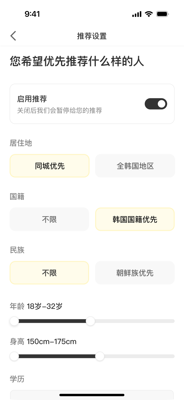 "最担心的就是遇到虚假信息或不靠谱的对象。这款APP要求用户必须完成在韩国的身份认证,还需要提交学历和工作证明,让人感觉更有保障。每次和匹配的对象聊天时,都能更放心地交流,不用担心对方的背景造假。" Matt Matthews "之前用过很多相亲APP,大部分是系统算法推荐,但质量参差不齐,很多匹配对象根本不符合我的要求。而这个APP由专业的红娘一对一匹配,推荐的对象真的很符合我的择偶标准,大大提高了匹配的成功率,省去了很多筛选的时间。" Sara冰美式 "이 앱의 특징은, 대체로 사람들이 결혼이나 진지한 관계를 원하는 경우가 많다는 것입니다. 그래서 만나는 사람들 대부분이 결혼을 염두에 두고 대화하며, 상대방도 진지한 의도로 대화를 나누기 때문에 시간을 낭비하지 않고 좋은 인연을 만들 수 있는 기회가 많았습니다." 서유니 "我喜欢这个APP的一个特点是,平台上大部分人都有明确的交友目的,大家都希望找到一个认真且有共同目标的伴侣。与这些女生交流时,我感到彼此的意图非常清晰,感情的建立也变得更加高效,不像其他平台那样随便或没有目标。" 旺财旺旺旺 "作为经历过婚姻的女性,我对安全感有更高的要求。韩遇的严格身份、学历和工作认证让我可以放心地和匹配对象交流,不用担心遇到隐瞒婚史或目的不纯的男生,交友变得更加可靠和安心。" 不发脾气 "由于需要学历和工作认证,感觉这里的用户整体素质比较高,大家都是真心想认真交往的,而不是随便聊聊或者只是玩玩而已。这对女生来说非常重要,能减少很多无效社交,更快找到合适的对象。" 半世风霜 "이 앱은 한국 내에서의 신분 인증, 학력 인증, 직업 인증을 요구하기 때문에 사용자가 신뢰할 수 있습니다. 한국인으로서도, 이런 인증 절차가 있어 실제로 만날 때 신뢰가 가고, 가짜 정보나 불성실한 사람을 만날 위험이 줄어들어 매우 안심이 되었습니다." 리카 "作为一名离婚的朝鲜族女性,我在传统相亲市场上常常感到压力,但在韩遇,我发现很多用户都更包容,也有类似经历的人。这里的匹配不仅关注年龄和职业,更关注个人的性格和生活理念,让我能遇到真正理解我的人。" SenMi "以前我总担心在相亲平台上遇到假资料或者不真诚的人,而这个APP强制进行韩国身份、学历和工作认证,大大增强了信任感。每次和女生交流时,我知道她们的背景真实可靠,这让我更能专注于寻找合适的伴侣,而不必担心被骗或被浪费时间。" 正往搬砖 "在韩国的华人圈子并不算太大,想要找到适合自己的伴侣并不容易。这款APP聚集了在韩的华人、朝鲜族和韩国用户,而且匹配机制更加精准,不仅能找到文化背景相近的人,还能更快建立信任感,对在海外寻找伴侣的女生来说,这种体验真的很难得。" 金小乖 "由于APP要求用户完成在韩国的身份认证、学历认证和工作认证,能确保每个人的信息是真实的。在其他社交软件上,常常会担心遇到虚假信息或者不怀好意的人,而这里的用户质量更高,交友环境更加安全可靠。" 清潭洞 Alice "作为朝鲜族,在韩国生活虽然适应,但在婚恋方面还是希望找到文化背景相近、有共同语言的伴侣。这个APP的用户很多是朝鲜族,匹配到的女生对我的成长环境和文化有更好的理解,沟通起来更加顺畅。" 崔荣在首尔